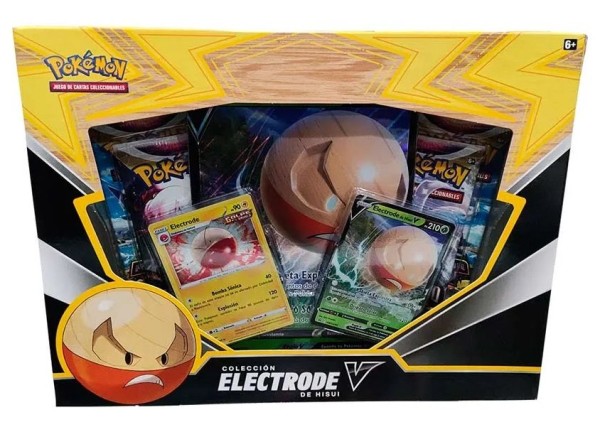 ¡Toma a tu oponente por sorpresa y ejecuta una remontada explosiva con Hisuian Electrode V! Este Pokémon de tipo Planta se vuelve aún más poderoso cuando se ve afectado por Condiciones Especiales y puede causar hasta 300 de daño por cero Energía, ¡así que no tengas miedo de correr riesgos! Encontrarás a Hisuian Electrode V como una carta promocional foil en versiones jugables y de gran tamaño, junto con una carta foil con el Electrodo tipo Rayo de la región de Kanto. Este electrodo de tipo relámpago puede causar 120 de daño por solo 1 energía, pero usa su ataque característico sabiamente: ¡tiene el costo de todos sus HP! También encontrarás cuatro paquetes de mejora de JCC Pokémon para reforzar tu colección junto con este volátil dúo de Pokémon.